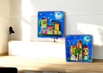 Grazie al telaio a cassetta realizzato a mano , questi quadretti possono essere facilmente attaccati al muro con un semplice chiodo senza bisogno del gancio alla cornice. Misura 11x 11 cm