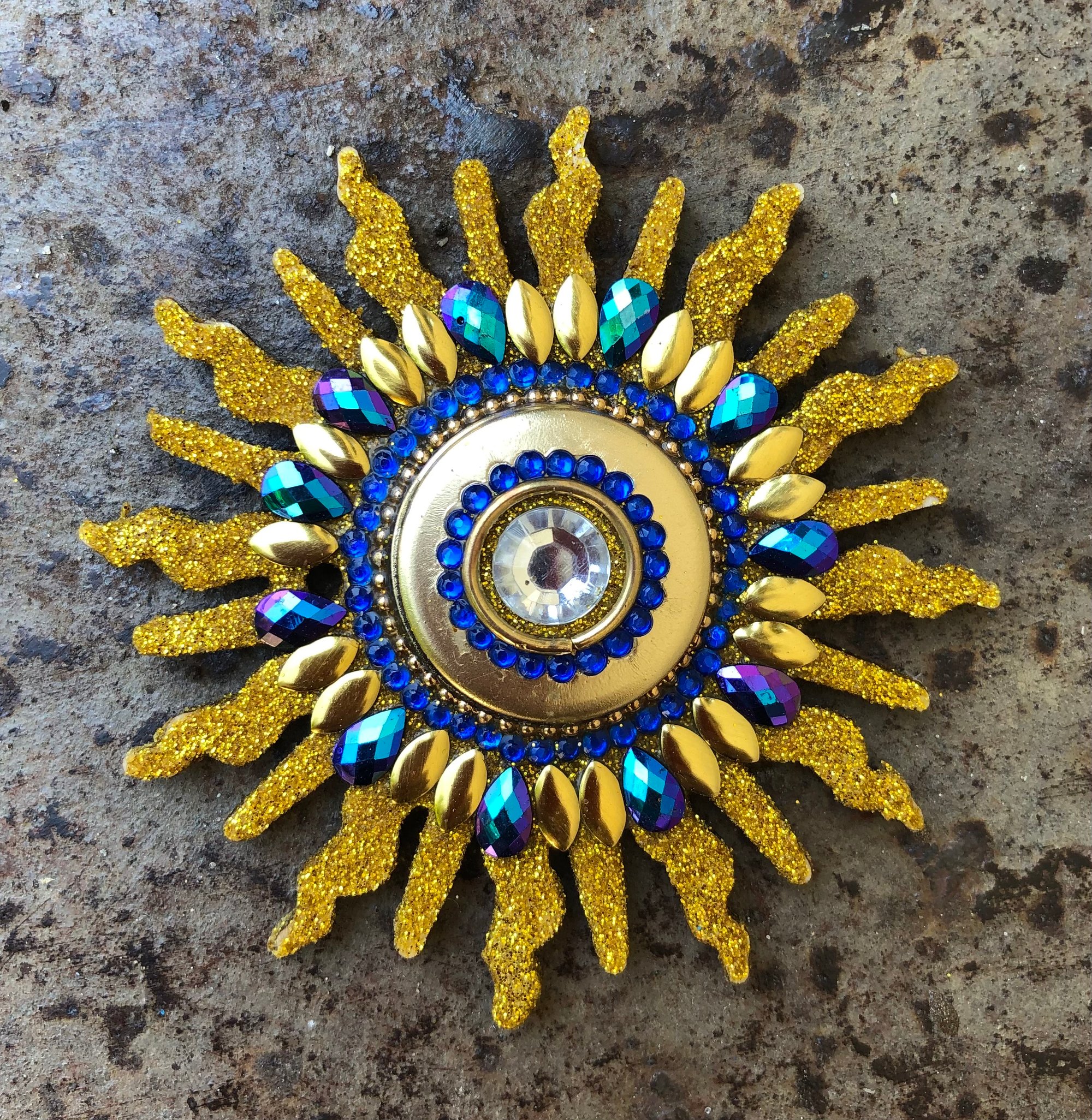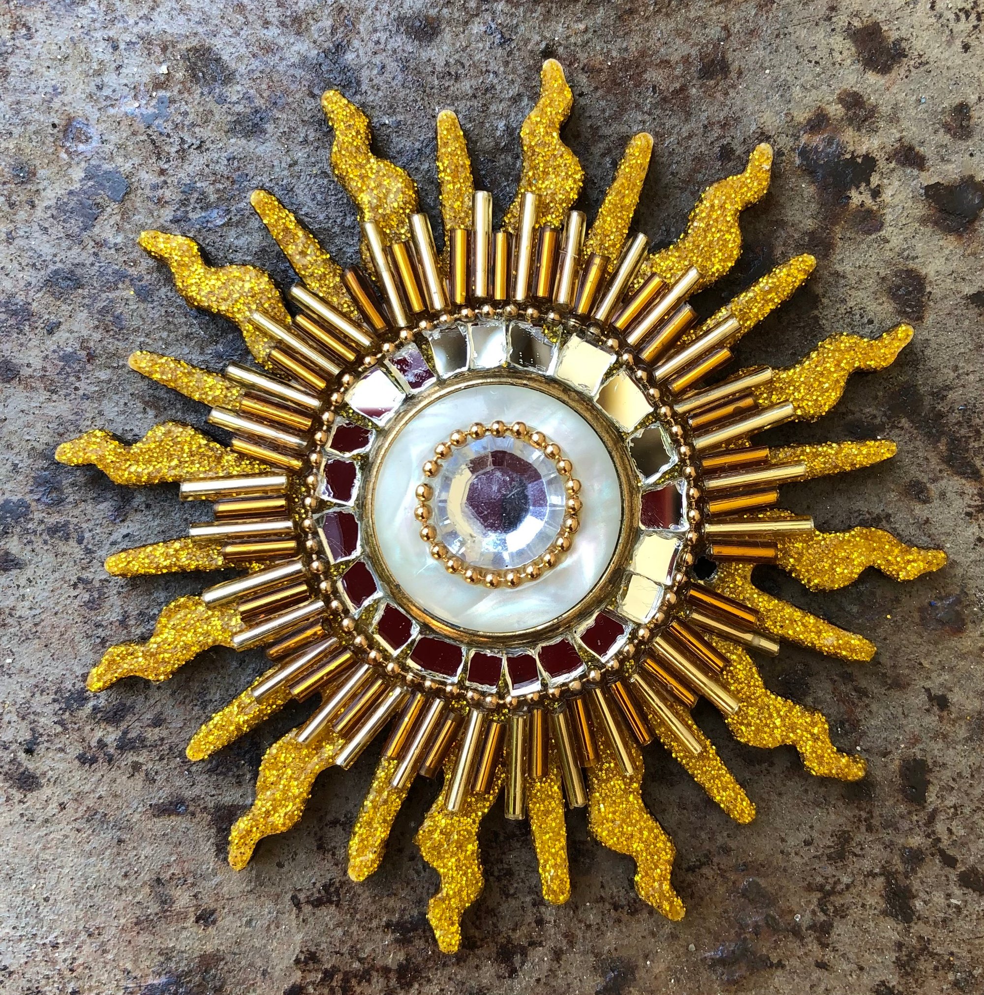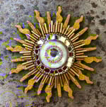 Diametro 8 cm , base in legno , ogni sole è un pezzo unico con una selezione ogni volta diversa di elementi per creare sempre un grande effetto luce