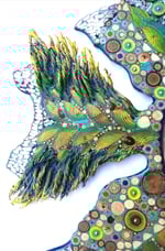 Una specchiera sagomata a forma di pesce e decorata nella mia tecnica di mosaico che include sezioni di legno e matite colorate accostati a vetro, specchietti, accessori di metallo, corda sapientemente lavorata per la coda. I colori, il gioco di luci creato dal mosaico di vetro colorato e di specchietti nelle estremità delle pinne e della fluente coda , regalano a questo pezzo vita e movimento che si noterà subito sulle vostre pareti! Misure 45x53x2.5 cm